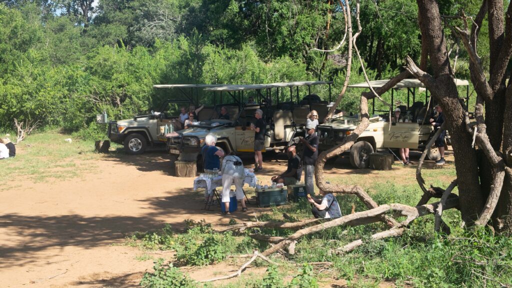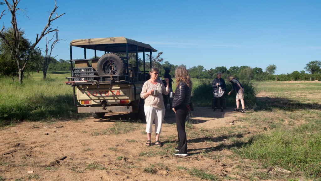 Når vi er på tur er der max tre jeeps (Toyota Landrovers) af sted. Da rangerne taler sammen på walki, får man set flere dyr, idet der udveksles info om hvad der er set hvor. Og når dyrene findes må man være max to jeeps ad gangen. Derfor er dyrene meget rolige.