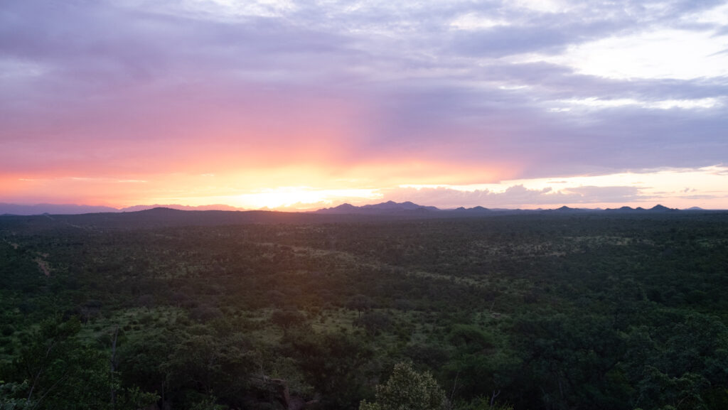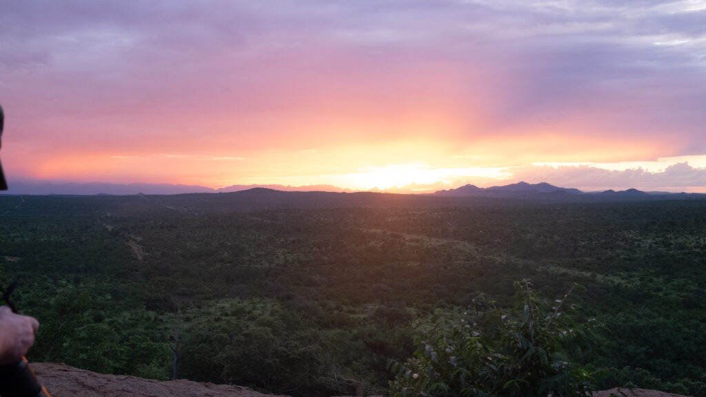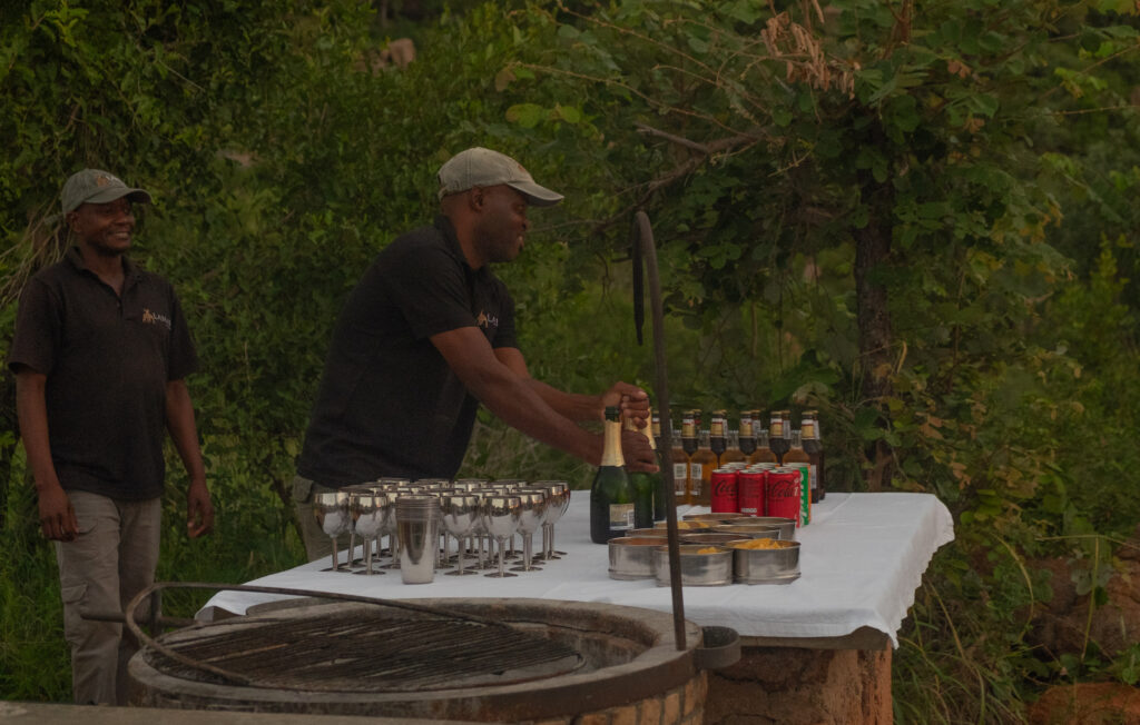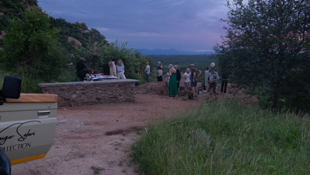 Inden solnedgang kørte vi op på en klippeside for at drikke sun-downer, der dagens anledning var erstattet at Champagne. Meget smukt.