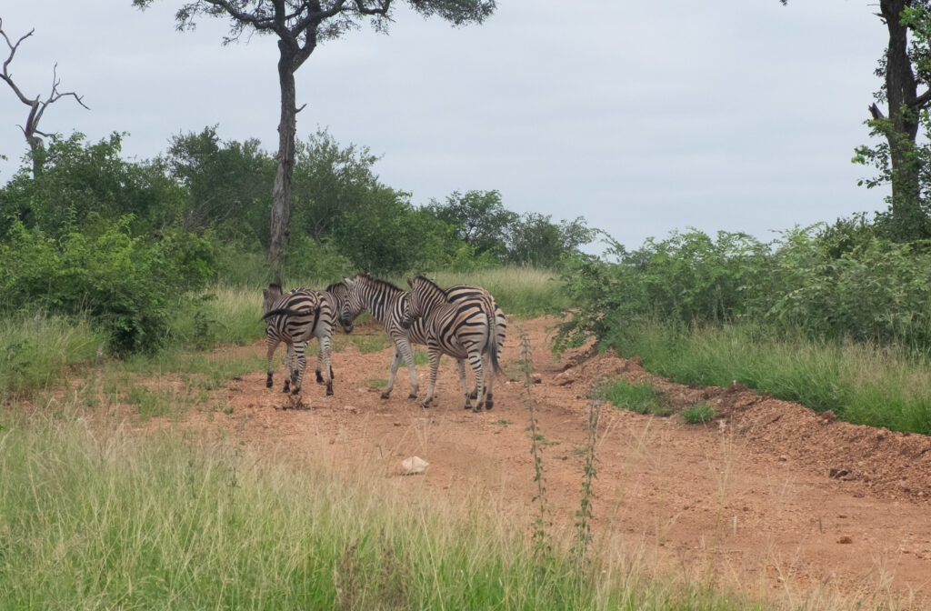 Vi har hele tiden manglet at se Zebraer, men i Jeepen på vej til busturen (2 timer) så vi endelig 4 stykker af en gruppe på 5 som rangeren kendte. En var desværre ædt af løverne