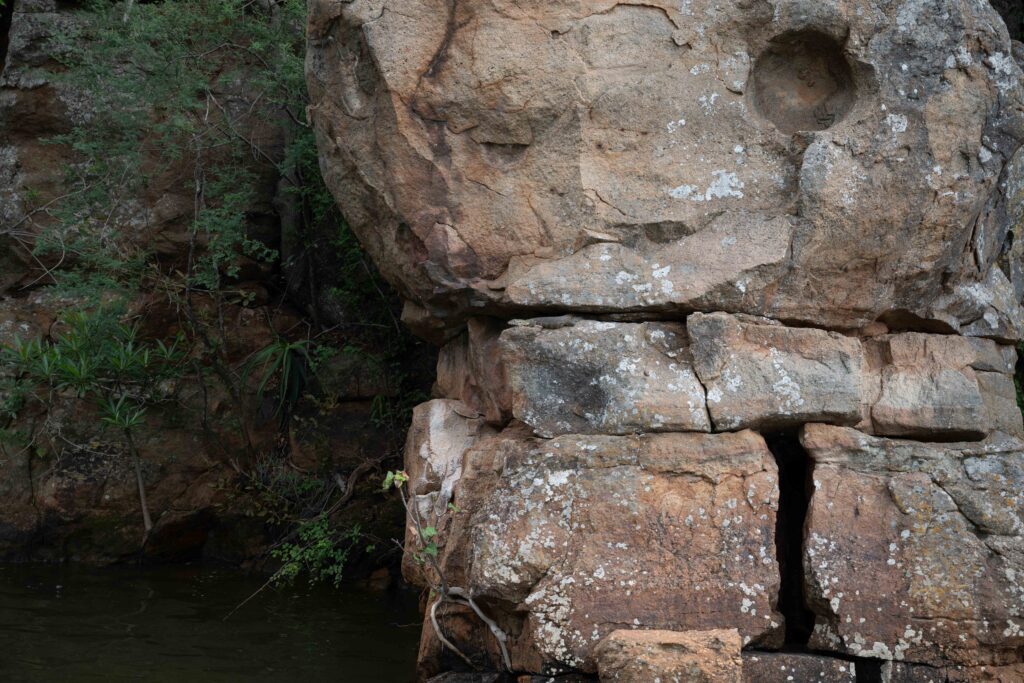 Denne klippeformation var ret porøs. Den er dannet gennem gange mill år, men på en måde så der er opstået huler i den.