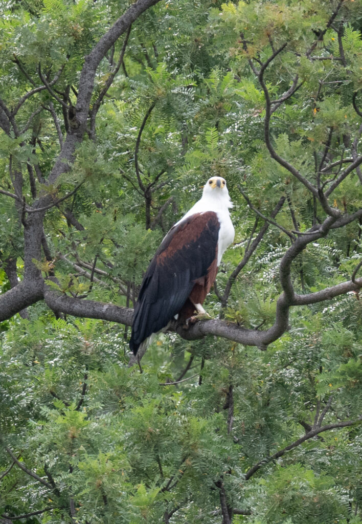 Afrikansk Fiskeørn. Hvilket så viser, at der er fisk i vandet.